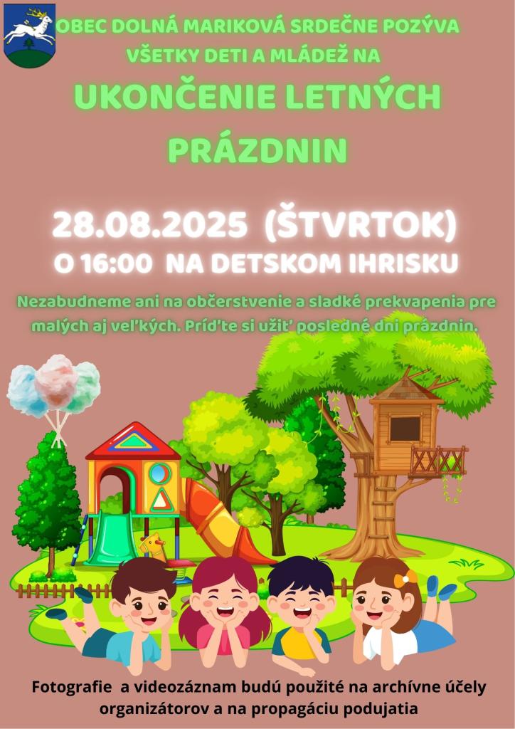 Leto pomaly končí a s ním aj čas letných prázdnin a preto sme pre všetky deti aj mládež pripravili spoločné stretnutie na detskom ihrisku. Tešiť sa môžete na občerstvenie aj súťaže.