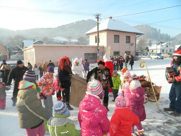 S príchodom zimy sa deti tešia na príchod Mikuláša. My sme pre našich najmenších pripravili spoločné stretnutie s Mikulášom, čertom a anjelmi pred kultúrnym domom. Pekné slnečné popoludnie strávili deti aj so svojimi rodičmi veselo. Mikulášovi spievali, recitovali a spoločne si aj zatancovali. Keď sadol súmrak na dedinu, spoločne rozsvietili vianočný stromček.
