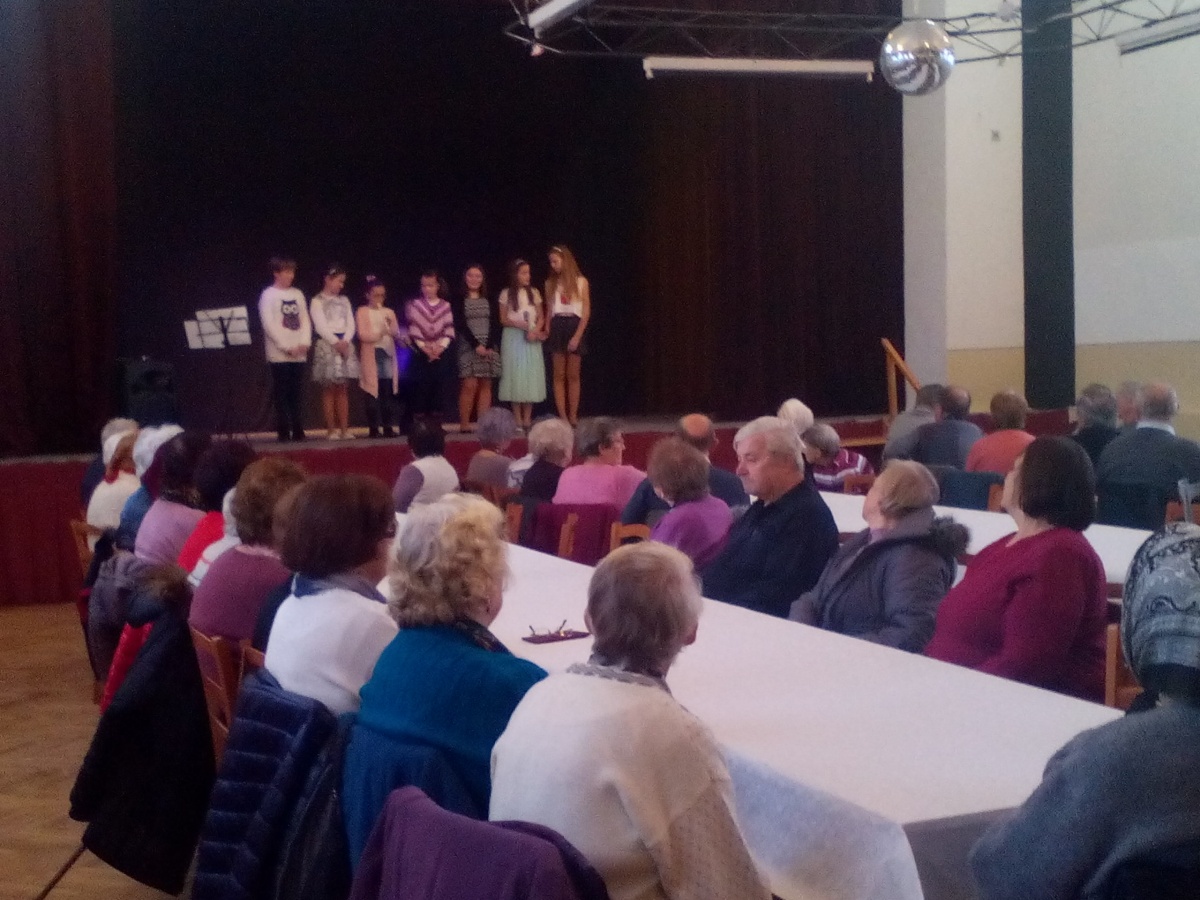 V tomto roku sme pripravili posedenie pre 70 ročných a starších. Atmosféru príjemného jesenného dopoludnia oživilo vystúpenie žiakov základnej školy.