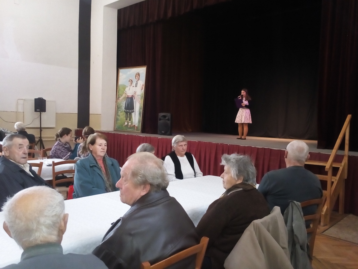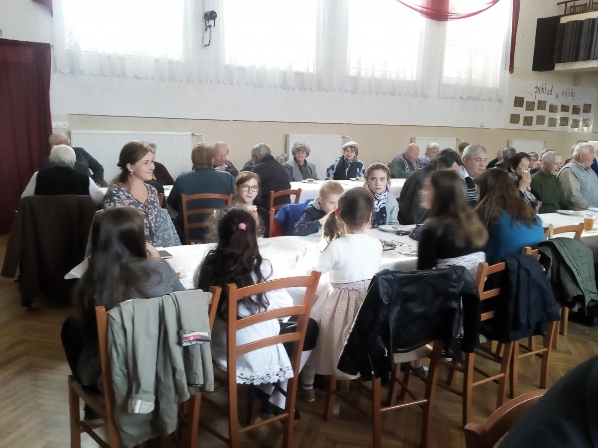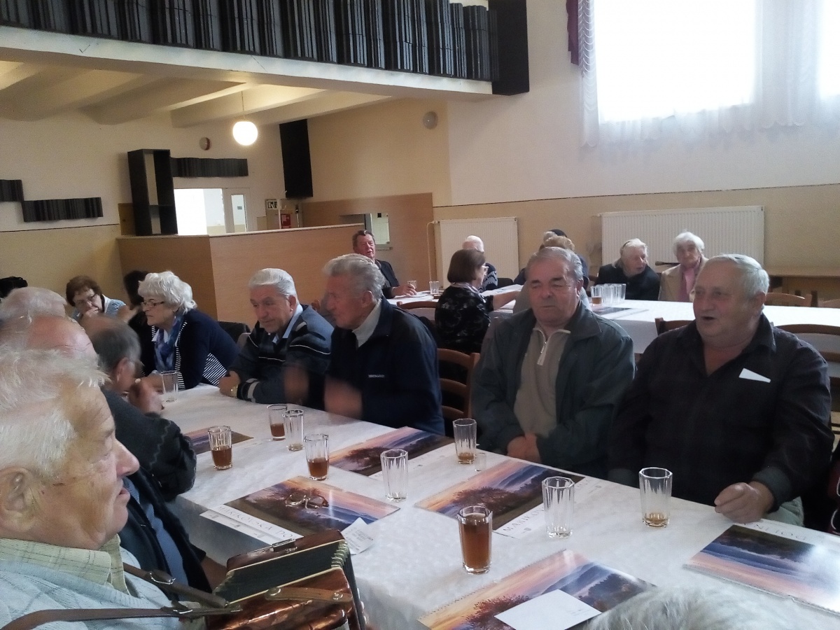 V tomto roku sme pripravili stretnutie pre občanov 70 ročných a starších, ktorých máme 151. Tým, že sme znížili vekovú hranicu o 5 rokov, posedenia sa mohlo zúčastniť viac ľudí, atmosféra je veselšia, rozhovory živšie. Po privítaní p. starostom Ing. Petrom Šujakom sa započúvali do piesní a básní v podaní žiakov ZŠ. Páčil sa im aj tanec, hra na husliach a veľmi ich zaujala scénka "Rozhovor s babičkou". Je milé, že aj sami hostia prispeli k príjemnej atmosfére hrou na harmoniku a ozembuch. A ako sa nám vyjadrila jedna dôchodkyňa: "Na posedenie sa vždy veľmi teším, pretože sa naraz stretneme pri jednom stole viaceré vrstovníčky a kamarátky, s ktorými som sa nevidela aj celý rok."