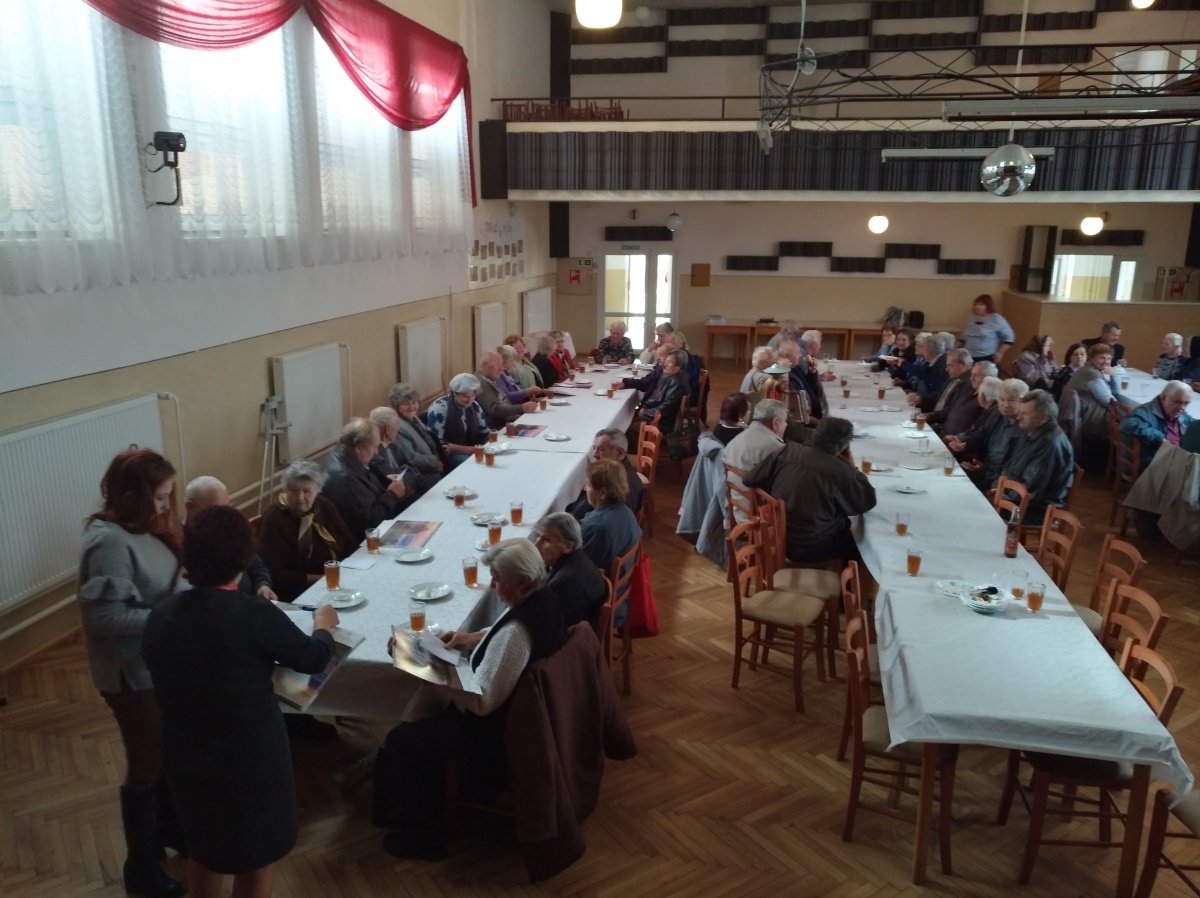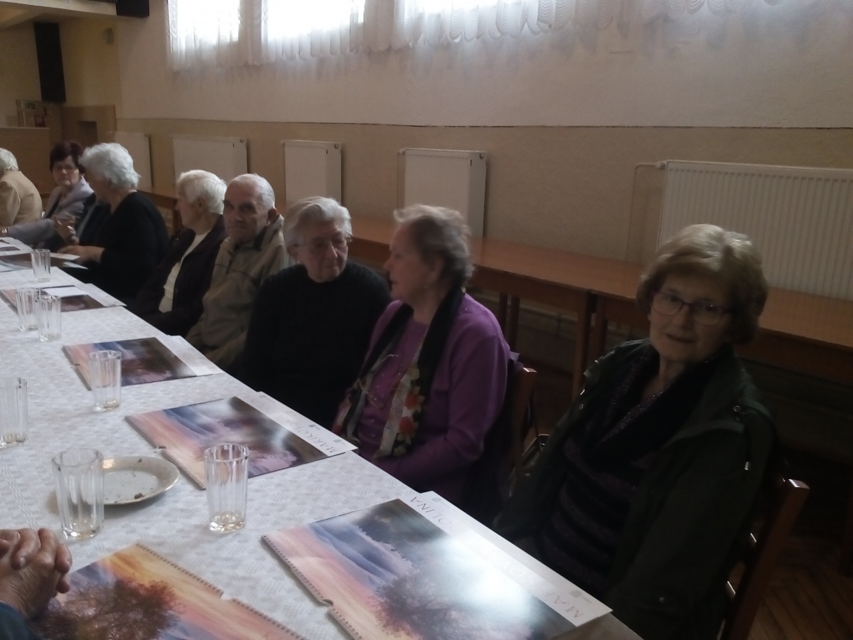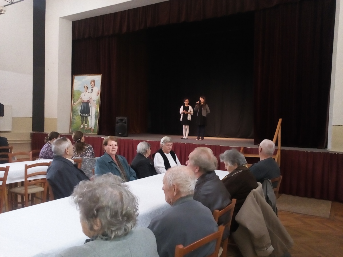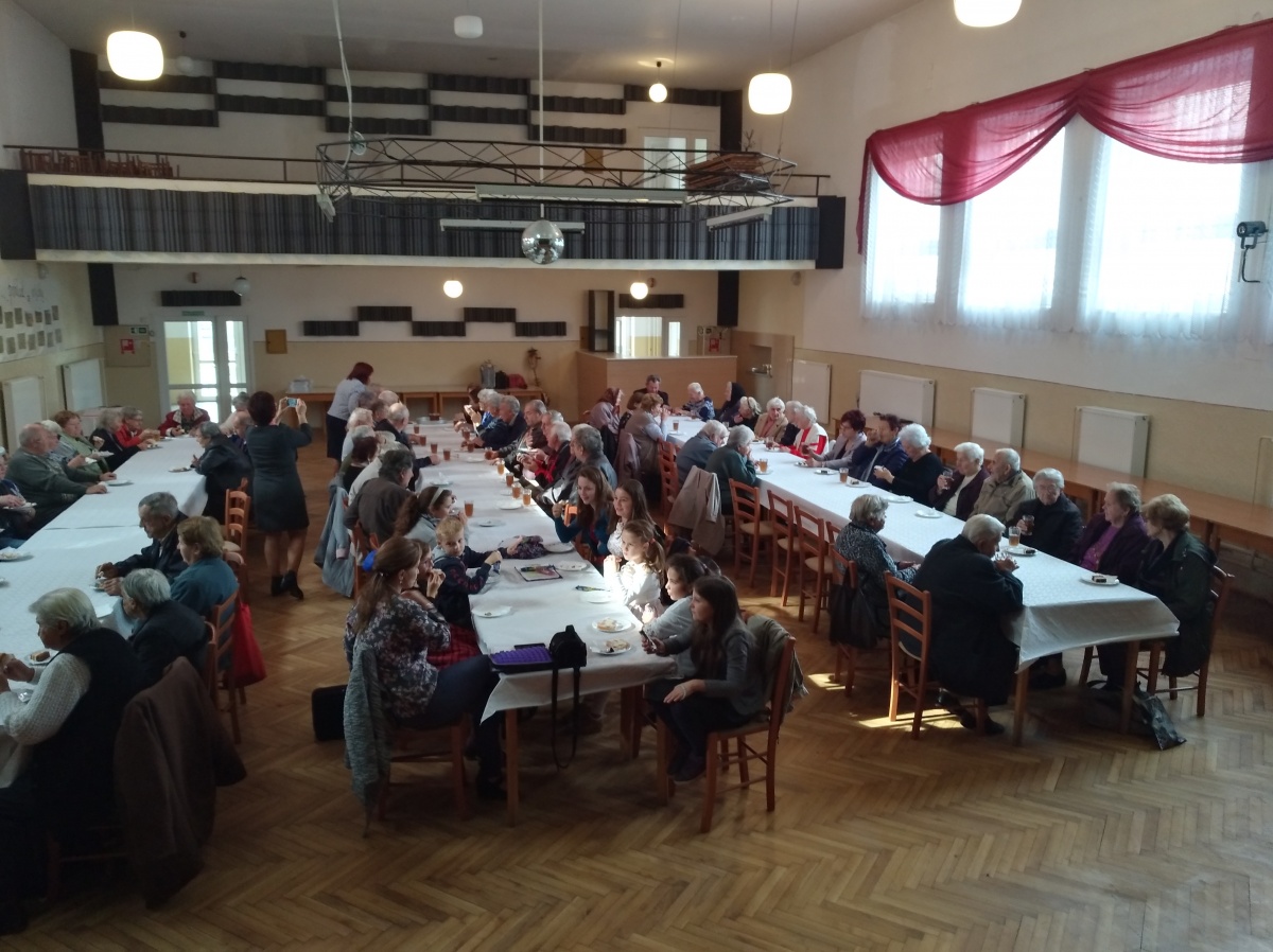 V tomto roku sme pripravili stretnutie pre občanov 70 ročných a starších, ktorých máme 151. Tým, že sme znížili vekovú hranicu o 5 rokov, posedenia sa mohlo zúčastniť viac ľudí, atmosféra je veselšia, rozhovory živšie. Po privítaní p. starostom Ing. Petrom Šujakom sa započúvali do piesní a básní v podaní žiakov ZŠ. Páčil sa im aj tanec, hra na husliach a veľmi ich zaujala scénka "Rozhovor s babičkou". Je milé, že aj sami hostia prispeli k príjemnej atmosfére hrou na harmoniku a ozembuch. A ako sa nám vyjadrila jedna dôchodkyňa: "Na posedenie sa vždy veľmi teším, pretože sa naraz stretneme pri jednom stole viaceré vrstovníčky a kamarátky, s ktorými som sa nevidela aj celý rok."