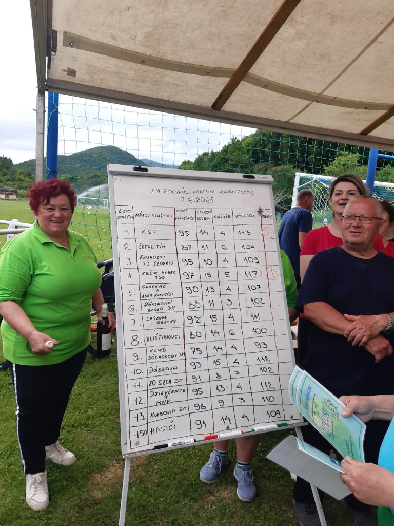 Štrnásť družstiev odštartovalo o 12. hod. - kúrilli, krájali, miešali a priebežne ochutnávali... Každý mal svoj tajný recept a do kotla pridávali rôzne ingrediencie. Počas varenia súťažili v rôznych disciplínach, tancovali a spievali. Pre deti si p. učiteľky zo škôlky pripravili tiež zaujímavé hry, súťaže a ako odmenu dostali diplomy a sladkosti. Deti sa vyskákali sa aj na nafukovacom požiarnickom aute a na záver sa všetci bez rozdielu veku vyšantili v pene, ktorú im striekali hasiči. O 15. hod. bola kapustnica dovarená a porota hodnotila. Body prideľovali za absolvované súťaže, celkový dojem a chuť kapustnice. Súťaž bola veľmi vyrovnaná a bodové rozdiely nepatrné. S počtom bodov 117 zvíťžazilo družstvo Marka Kršíka 750, druhé miesto obsadil Klub slovenských turistov a o tretie miesto sa podelili družstvá: Dúbrava a Dzievčence z MNV. Okrem cien a diplomov si súťažiaci aj fanúšikovia odnášali pohodu, dobrú náladu a radosť z pekného, spoločne stráveného popoludnia. Ďakujeme všetkým, ktorí organizovali a akýmkoľvek spôsobom prispeli pri príprave a priebehu tejto obecnej akcie.